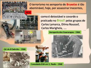 Me diga aí: existe alguma diferença entre os atos terroristas praticados por islâmicos em Bruxelas e aqueles praticados pelos terroristas brasileiros no passado, como Lamarca, Marighella e Dilma Rousseff? Não! Nenhuma!