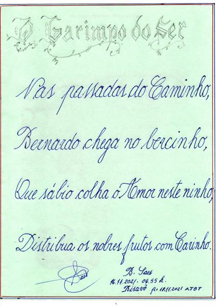 Poesias-->O GARIMPO DO SER - mensagem caligráfica - Saes -- 17/11/2021 - 19:22 (Boanerges Saes de Oliveira)