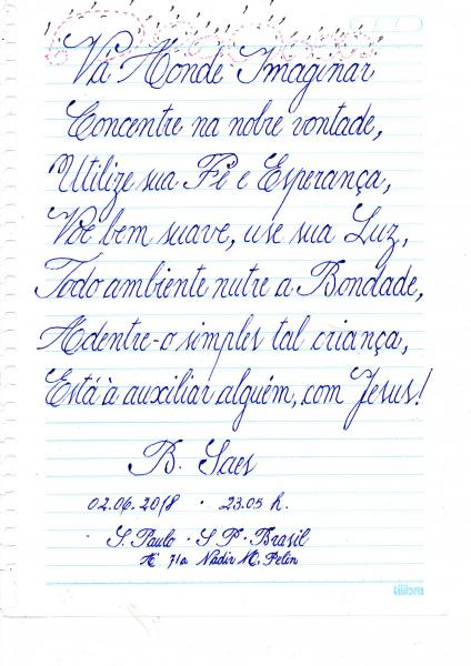 Poesias-->VA AONDE IMAGINAR - mensagem caligrafica - Saes -- 08/12/2022 - 09:02 (Boanerges Saes de Oliveira)