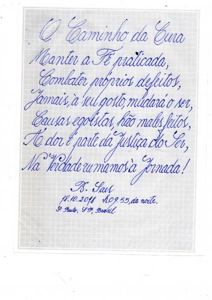Poesias-->O CAMINHO DA CURA - mensagem caligrafica - Saes -- 13/03/2023 - 11:11 (Boanerges Saes de Oliveira)